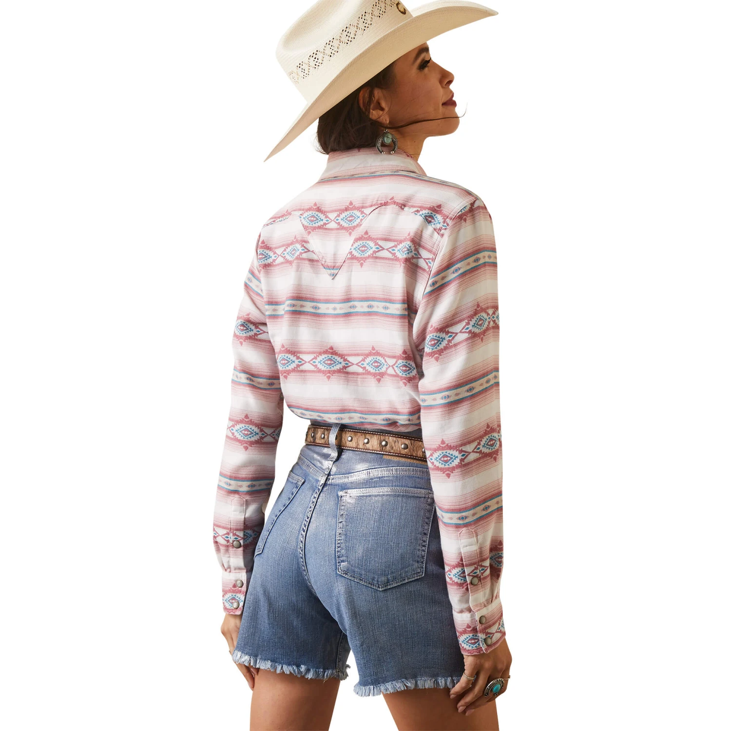 Pink and Blue Aztec Stripe Print Long Sleeve Kaycee Classic Fit Snap Front Shirt.