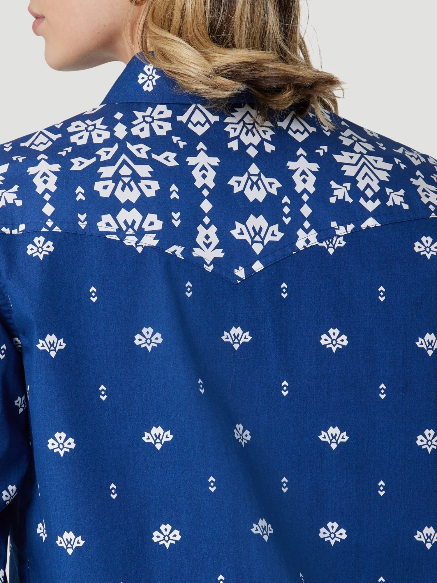 Blue American Bandana Long Sleeve Snap Front Shirt.